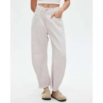 Kedera Women Stripe Barrel Jeans Casual Loose Denim Jeans Wide Leg Baggy Pants Mid Waist Boyfriend Jeans Y2k