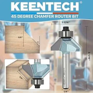 Introducing the KEENTECH 45 Degree Chamfer Router Bit, designed to take your woodworking and crafting projects to the next level! Featuring a 1/4 Inch shank and a precision cutting diameter of 1-1/16 Inches, this chamfer bit is engineered to create clean, accurate chamfers at a consistent 45-degree angle. Whether you're a professional woodworker or a DIY enthusiast, the KEENTECH router bit will help you achieve beautiful finish edges on a variety of materials.