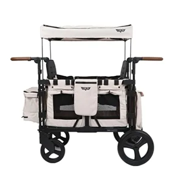 Keenz XC 2.0 - Luxury Comfort Stroller Wagon | Foldable 2 Passenger Double Seater with Adjustable Canopy | Cream