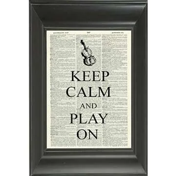 Show moreAdd a touch of artistry and inspiration to your wall with the KEEP CALM AND PLAY ON ART PRINT. This stunning piece beautifully combines the essence of music with a vintage twist, perfect for any musician or music lover. Featuring classic illustrations of a cello and violin against a black and white backdrop, this print captures the timeless beauty of musical instruments while incorporating a motivational message that resonates with creatives. Crafted on high-quality archival paper, it's not just a print—it's a statement that transcends trends, ensuring your space feels unique and uplifting.