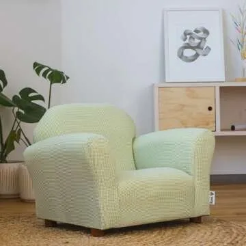 Keet Roundy Kid's Chair Gingham Kids Chair, Comfortable and Durable Kids Chair, Kids Armchair Easy to Coordinate, Kids Bedroom Chair, Comfy, Ages 2-5 Years, Kid Sofa Chair, Green