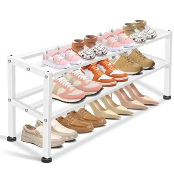 Show more Transform your living space with the KEETDY Heavy Duty Shoe Rack, the ultimate storage solution that blends functionality with modern design. Crafted from high-quality, thick metal tubes, this sleek white shoe organizer not only provides a sturdy structure but also adds a touch of elegance to any room. With its impressive capacity to hold up to 12 pairs of shoes, including your favorite boots, sneakers, and sandals, this shoe rack is perfect for families or anyone wanting to keep their footwear tidy and accessible. The stackable and expandable design allows you to customize your storage solution to fit your needs, ensuring a clutter-free environment in your entryway, bedroom, or mudroom.