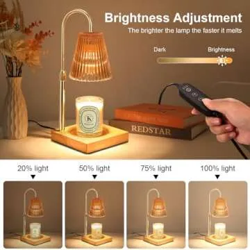 Keevvon Candle Warmer Lamp, Adjustable Height Candle Lamp Warmer with Timer, Electric Dimmable Wax Melt Warmer for Jar Candles with 2 Bulbs, Bedroom Home Decor Aesthetic Gift (Amber)
