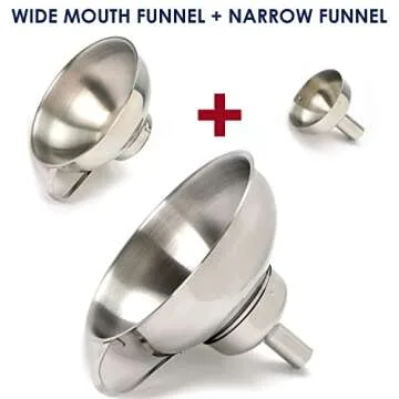 Experience thoughtful design that not only looks elegant but is also highly functional. The set comprises a large wide-mouth funnel, a narrow-mouth funnel, and detachable mesh filters that cater to a variety of kitchen needs. The wide-mouth funnel stands out at 5.7 inches, ideal for big batches of sauces, stocks, and gravies, making it a must-have for home canners.