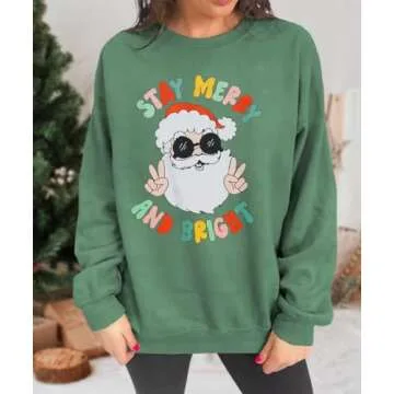 Show moreIntroducing the KEKEMI Women's Christmas Santa Sweatshirts Stay Merry And Bright Oversized Shirt, the ultimate festive wear for this holiday season! Crafted from a super soft cotton blend, this long-sleeve crewneck sweatshirt ensures maximum comfort and breathability, making it perfect for family gatherings, casual outings, or simply lounging at home. The lightweight material is gentle on the skin and offers just the right amount of stretch, allowing you to move freely while celebrating the joyous vibes of Christmas. With its adorably designed vintage Santa graphic, this sweatshirt combines cheerful holiday spirit with laid-back style, suitable for women of all ages to enjoy during the colder months and festive gatherings.