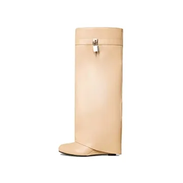 Keleimusi Fold Over Wedge Boots Heeled PadLock Pant Knee High Shoes
