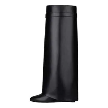 keleimusi Fold Over Wedge Boots Heeled PadLock Pant Knee High Shoes Tall/Short Booties in Black