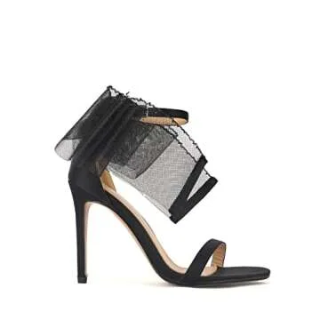 keleimusi Womens Wedding Sandals with Asymmetric Mesh Bows Dress Ankle Strap Stiletto Heels