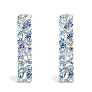 These earrings are made from premium materials, featuring 18k gold plating over a zinc alloy base that exudes luxury while remaining comfortable enough for everyday wear. Their dimensions of 0.5x2.4 inches ensure they are eye-catching without being cumbersome. The refreshing light blue rhinestones are not only beautiful but also versatile, effortlessly complementing a range of skin tones and outfits.