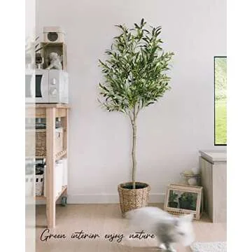 Keloteven Artificial Olive Tree Indoor 5FT Tall Faux Olive Plant Potted Olive Silk Tree Fake Olive Tree in Pot Artificial Plants for Home Office Room Tree Decor Housewarming Gift