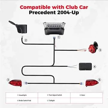 KEMIMOTO Deluxe Precedent Light Kit Compatible with Club Car Precedent 2004-Up, Upgrade 12V Street Legal LED Headlights, Taillights with Turn Signals Hazard Light Switch, Horn, Brake