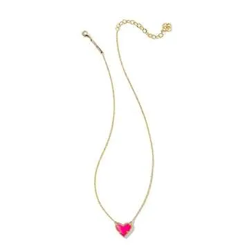 Show moreIntroducing the stunning Kendra Scott Ari Heart Adjustable Length Pendant Necklace, the epitome of elegance and charm! This exquisite piece is designed for the modern woman who appreciates dainty and delicate jewelry without sacrificing quality or style. Featuring a striking neon pink heart pendant, this necklace is not just a piece of jewelry, but a symbolic representation of love and style that can be worn every day or saved for those special moments. Crafted from high-quality materials, it boasts a robust and durable 14k gold-plated chain that ensures it remains untarnished through everyday wear. Its adjustable length, ranging from 15 inches to 17 inches with a 2-inch extender, offers versatile styling options tailored to your wardrobe.