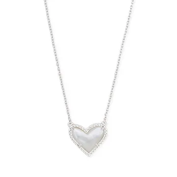 Kendra Scott Ari Heart Pendant Necklace - Rhodium-Plated Mother-of-Pearl Jewelry