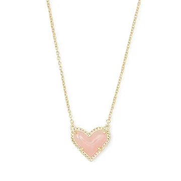 The Ari Heart Gold Pendant Necklace in Rose Quartz is a stunning combination of femininity and elegance, perfectly crafted by the renowned brand, Kendra Scott. This necklace features a unique asymmetrical design, allowing it to stand out whether worn alone or layered with other pieces. Measuring '0.49' L x '0.57' W, this pendant drapes beautifully on a '15' L chain, which includes a '2' extender to offer versatile styling options. The necklace boasts a lobster claw closure, ensuring it remains secure while...