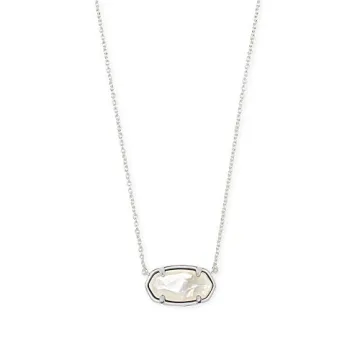 Show more The Kendra Scott Elisa Sterling Silver Pendant Necklace in Ivory Mother-of-Pearl is a stunning embodiment of elegance, designed intricately to elevate your style no matter the occasion. This beautiful piece features a delicately crafted pendant that measures 0.62 inches in length and 0.35 inches in width, capturing the perfect balance between subtlety and standout elegance. Created by the renowned jewelry brand Kendra Scott, this necklace is a blend of exquisite craftsmanship and high-quality materials, ensuring you get a timeless accessory that beautifully marries sophistication and simplicity.