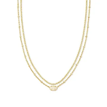 Show moreDiscover the elegance of the Kendra Scott Emilie Multi-Strand Necklace, a stunning piece of fashion jewelry designed for women who appreciate style and sophistication. Crafted from 14k gold-plated metal, this necklace features an exquisite Iridescent Drusy stone that catches the light beautifully, making it a captivating addition to any outfit. The necklace boasts a delicate 15.5-inch chain, complemented by a 3-inch extender, ensuring the perfect fit for layering with other pieces in your collection. The design is not only aesthetically pleasing but also practical, thanks to its resistance to tarnishing and tangling, making it a reliable choice for everyday wear.