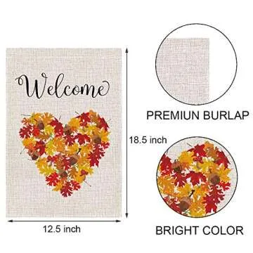 Keniot Autumn Leaf Welcome Garden Flag - Double Sided Burlap Fall Decor, 12.5 x 18.5 inch