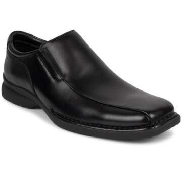 Show moreIntroducing the Kenneth Cole Men's Reaction Punchual Slip-On Loafer in classic black, designed for the modern man who values both comfort and style. These casual slip-ons feature a square toe design, offering a sleek and contemporary look, perfect for both professional settings and relaxed outings. With elasticized insets at the tongue, they provide easy slip-on and slip-off functionality, making them an ideal choice for those on the go.