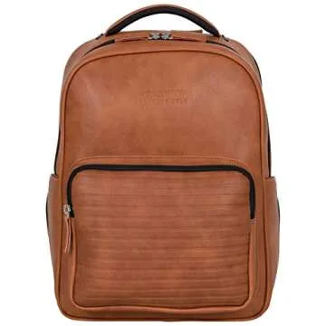 Kenneth Cole On Track Pack Vegan Leather Tablet Bookbag Anti-Theft RFID, Work, & Travel, Cognac, 15.6" Laptop Backpack