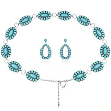 While various accessories on the market may claim to stand out, the Kenning Turquoise Concho Chain Belt and earring set truly sets itself apart with its exceptional quality and stylish design. Unlike many cheaper alternatives that might wear down quickly or lack a cohesive aesthetic, this set combines exquisite craftsmanship with durable materials ensuring it can withstand wear over time. Competitors often miss the mark on providing matching items, but with this set, you receive a complete look that can elevate any outfit effortlessly.