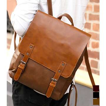 Kenox Vintage PU Leather Laptop Backpack Knapsack Rucksack Weekender Daypack Bag