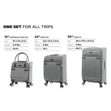 In the realm of softside spinner luggage, the kensie Hudson set stands out among its competitors due to its combination of affordability and high quality. Unlike many other luggage brands that offer limited features without calling attention to aesthetics, kensie provides a stylish option that doesn’t compromise on durability. The 360-degree wheels set it apart by ensuring effortless navigation, while the expandable design provides versatility that is often lacking in similar products. Additionally, the charm of the Heather Gray fabric adds a touch of sophistication that is hard to find in budget-friendly suitcase collections.