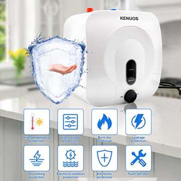 KENUOS Mini Tank Instant Hot Water Heater Plug in 110V 2.5 Gallon Under Sink Water Heater White Small Water Heater On Dermand,1500W Kitchen Rv Under Counter Water Heater with Safety Valve