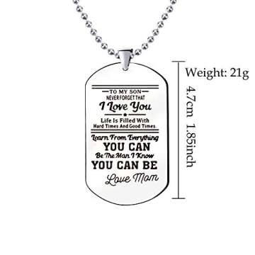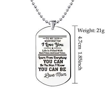 KENYG to My Son Stainless Steel Dog Tag Beads Chain Necklace for Son from Mom Christmas Birthday