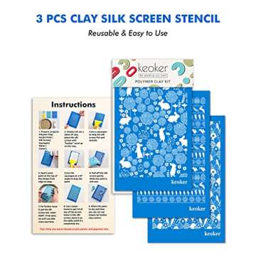 KEOKER Easter Silk Screen for Polymer Clay, 3PCS Easter Silk Screen Polymer Clay, Easter Day Silk Screen Stencils for Polymer Clay, Rabbit Pattern Polymer Clay Stencil (Easter Eggs)