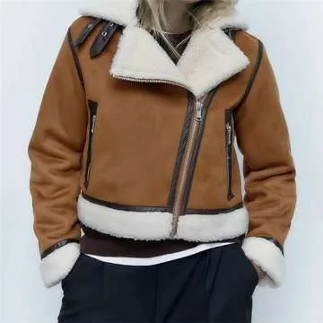Show moreIntroducing the KEOMUD Women's Sherpa Lined Crop Jacket, your ultimate companion for warmth and style this winter. Crafted with meticulous attention to detail, this jacket features a plush sherpa lining that not only adds to its chic appeal but also envelopes you in cozy comfort. The soft faux suede fabric ensures that this crop jacket is as pleasant to wear as it is fashionable, making it a versatile addition to your wardrobe. Ideal for women on the go, its stylish design pairs effortlessly with various outfits, whether you're headed to a casual brunch or a night out on the town.