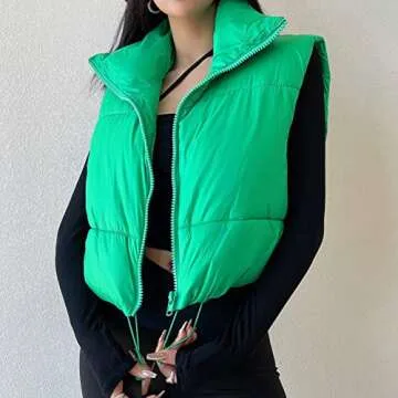 KEOMUD Women's Winter Crop Vest Lightweight Sleeveless Warm Outerwear Puffer Vest Padded Gilet (as1, alpha, x_s, regular, regular, Green, X-Small)