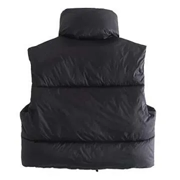 KEOMUD Women's Winter Crop Vest Lightweight Sleeveless Warm Outerwear Puffer Vest Padded Gilet Black X-Small