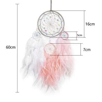 Keponbee Dream Catcher for Girl Pink, Handmade Romantic Unique Dreamcatcher Beads and Feathers Wall Hanging Ornament Gift for Bedroom