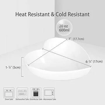 Keponbee Heart Bowls Porcelain 2 pcs White Heart-shaped Bowl Dessert Bowls/Salad Bowl 7 inch, 20 OZ