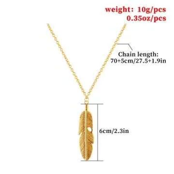 Kercisbeauty Gold Feather Pendant with Chain Necklace Long Necklace for Women Men