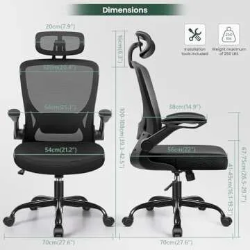 KERDOM Ergonomic Office Chair - Breathable Mesh Desk Chair with Headrest and Flip-up Arms