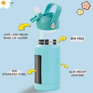 Kerilyn 12oz Insulated Water Bottle For Kids, Stainless Steel Insulated Kids Water Bottle, Toddler Cup With Straws Leak-proof, Kids Water Bottles For School Boys Girls, BPA Free, Green