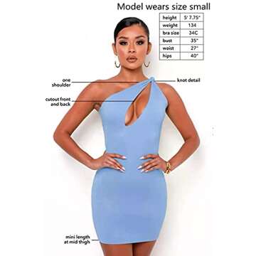 KERPELLY Women's Sexy One Shoulder Hollow Out Knot Sleeveless Bodycon Mini Club Party Dress,Blue,S