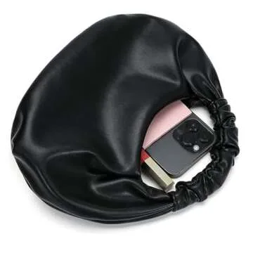 KERYHEBN Cloud Pouch Bag Women Shoulder Handbag Soft Vegan Leather Vintage Hobo Mini Small Purses Ruched Cloud Bags (black)