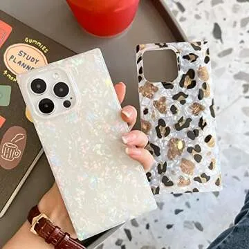 KERZZIL Cute Rectangle Compatible with iPhone 14 Pro Case, Slim Colorful Sparkle Glitter Mother Shell Pearl Pattern Translucent Soft TPU Silicone Protective Bumper Cases Cover(Pearl)