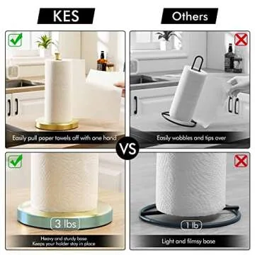 KES Kitchen Paper Roll Holder Standing Paper Towel Holder with Weighted Base for Standard or Mega Rolls SUS304 Stainless Steel Brushed Gold, KPH202-BZ