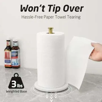 Show moreUpgrade your kitchen with the KES Marble Paper Towel Holder — a perfect blend of style and functionality. Made from premium SUS304 stainless steel and featuring a stunning natural marble base, this towel holder not only enhances the aesthetics of your kitchen but is also designed for durability and rust resistance. Each marble base is a unique piece of art, showcasing beautiful veining that adds an elegant touch to any countertop. Weighing in at a substantial 3 pounds, the heavy base prevents tipping, ensuring your kitchen stays tidy and organized while you work.