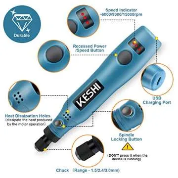 Introducing the KeShi Cordless Rotary Tool — a compact and powerful travel companion for all your DIY needs. Upgraded with cutting-edge 3.7V USB rechargeable technology, this multi-purpose tool is designed for convenience and efficiency. Whether you're looking to sand, drill, polish, or engrave, this versatile rotary tool is equipped with a remarkable 42-piece accessory kit. Its user-friendly design and lightweight structure make it perfect for hobbyists...