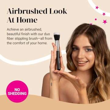 Keshima Duo-Fiber Stippling Brush - Premium Stipple Brush for Powder and Liquid Makeup Foundation