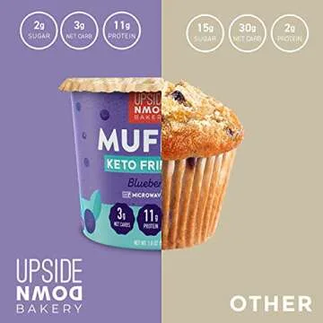 Keto Blueberry Muffin Cup by Upside Down Bakery - 11g Protein & Gluten Free Snack, Microwavable Mug Cake Dessert - Just Add Water - 3g Net Carbs - 2g Sugar - Grain Free - Single Serve Cups (3 Pack)