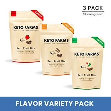 Show more Introducing the Keto Trail Mix from Keto Farms, the definitive choice for snack enthusiasts who refuse to compromise on flavor while adhering to a low-carb lifestyle. Each pack is a thoughtfully curated blend of crunchy cheese, salted nuts, and vibrant flavors aimed at satisfying your munchies without the guilt. With only 3g Net Carbs per serving, this trail mix is not just a snack; it's a game-changer for your keto journey.