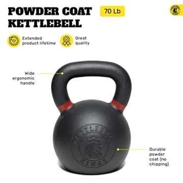 Kettlebell Kings 70lb Cast Iron Weight - Powder Coated Kettle Bell for Strength Training for Men and Women - Durable Gym Equipment for Home Workouts - Easy Grip Handle