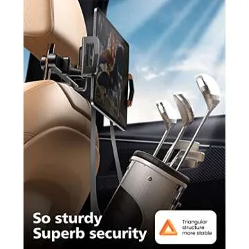 KEUASX iPad Holder for Car Backseat, Tablet iPad Holder for Car Mount Headrest Travel Portable Car Tablet Holder Mount Suitable for 4.7-12.9" Devices, Black Headrest Rod Tablet Holder Mount