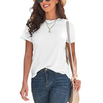 KevaMolly Basic White T Shirts for Women UPF 50+ Short Sleeve Casual Solid Summer Tops Trendy Solid Loose Fit Tshirt S