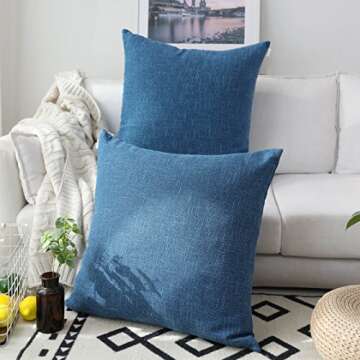 Kevin Textile Decorative Toss Pillow Case Star Striped Linen Cushion Cover for Sofa,Navy Blue,26x26-inch (66x66cm), 2 Packs